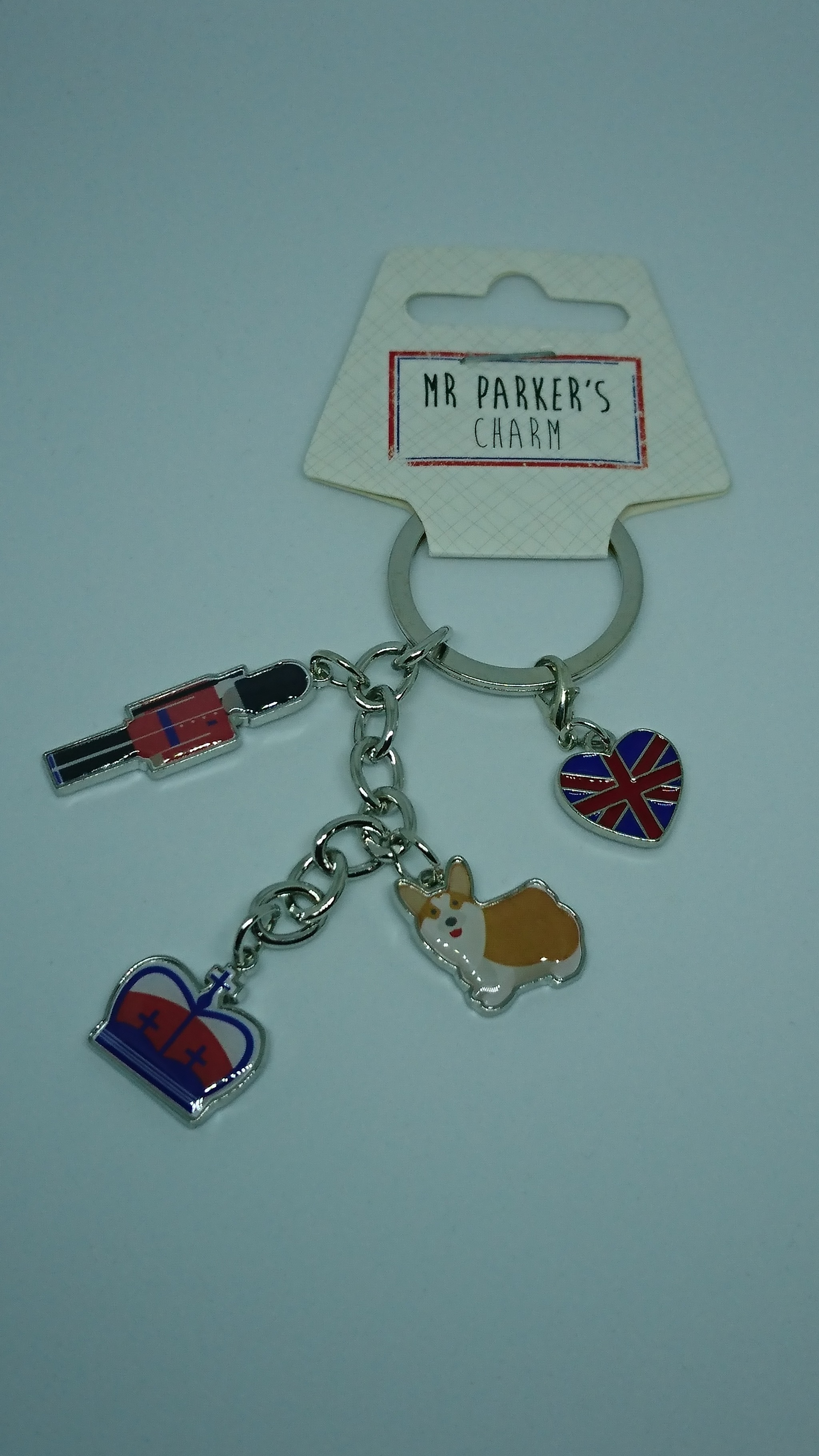 ロンドンを代表する衛兵、王冠、イギリスの旗、そしてコーギーがゆらゆら揺れます。