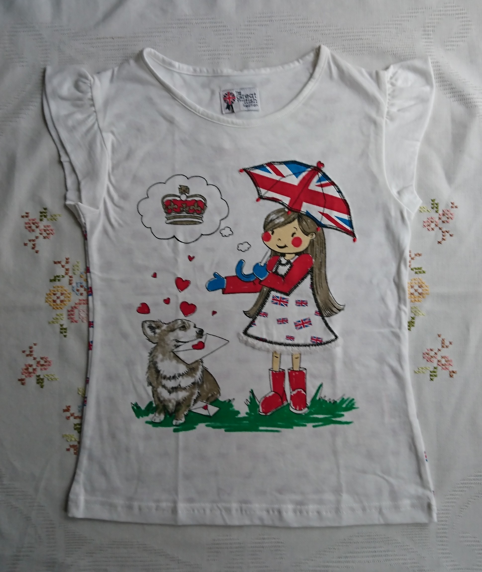 ハートの模様があるTシャツのハートはスパンコールで、そっと向きを変えると赤から青になります。