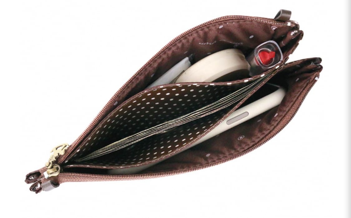 3つのコンパートメントには、携帯電話、チケット、カードを簡単に収納できます。