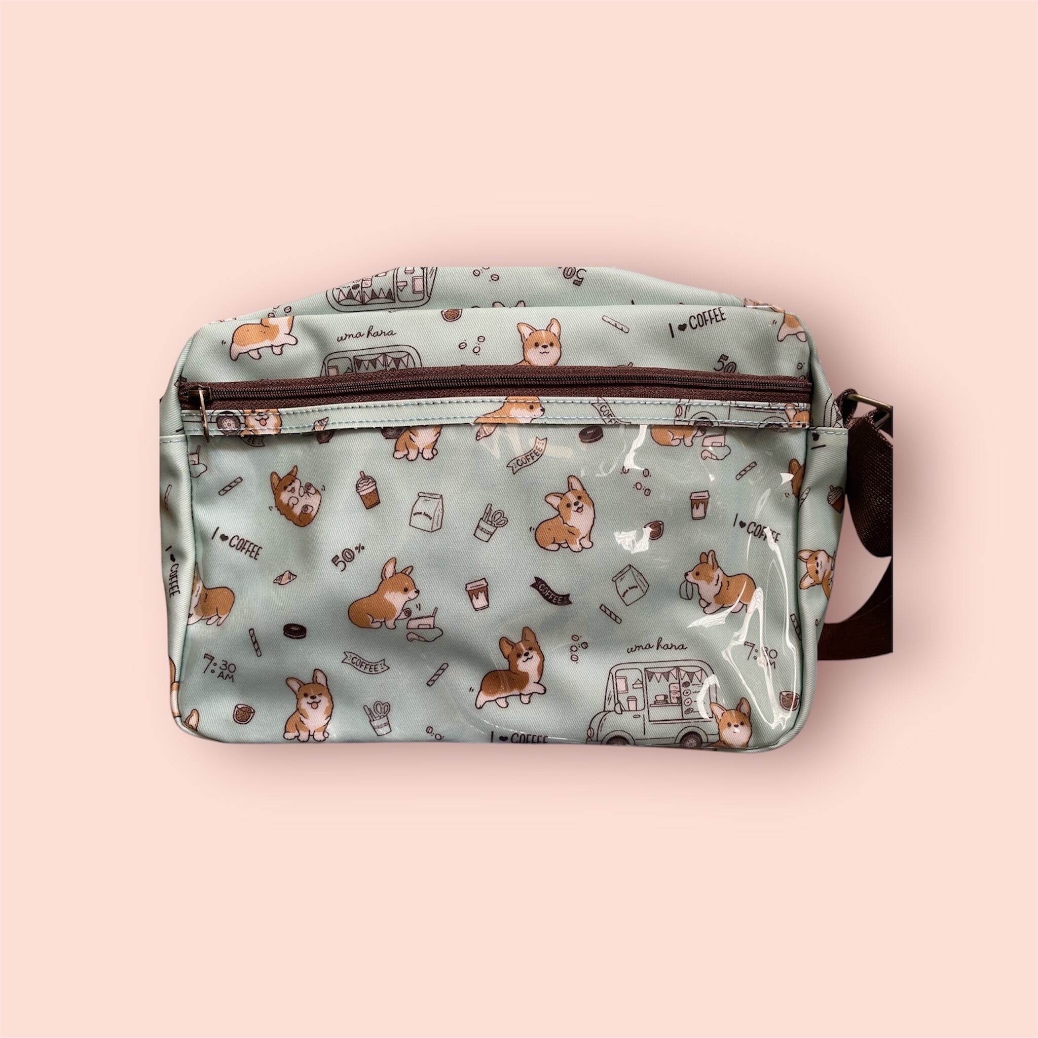 後ろ面の外ポケットが透明なタイプのクロスボディバッグ