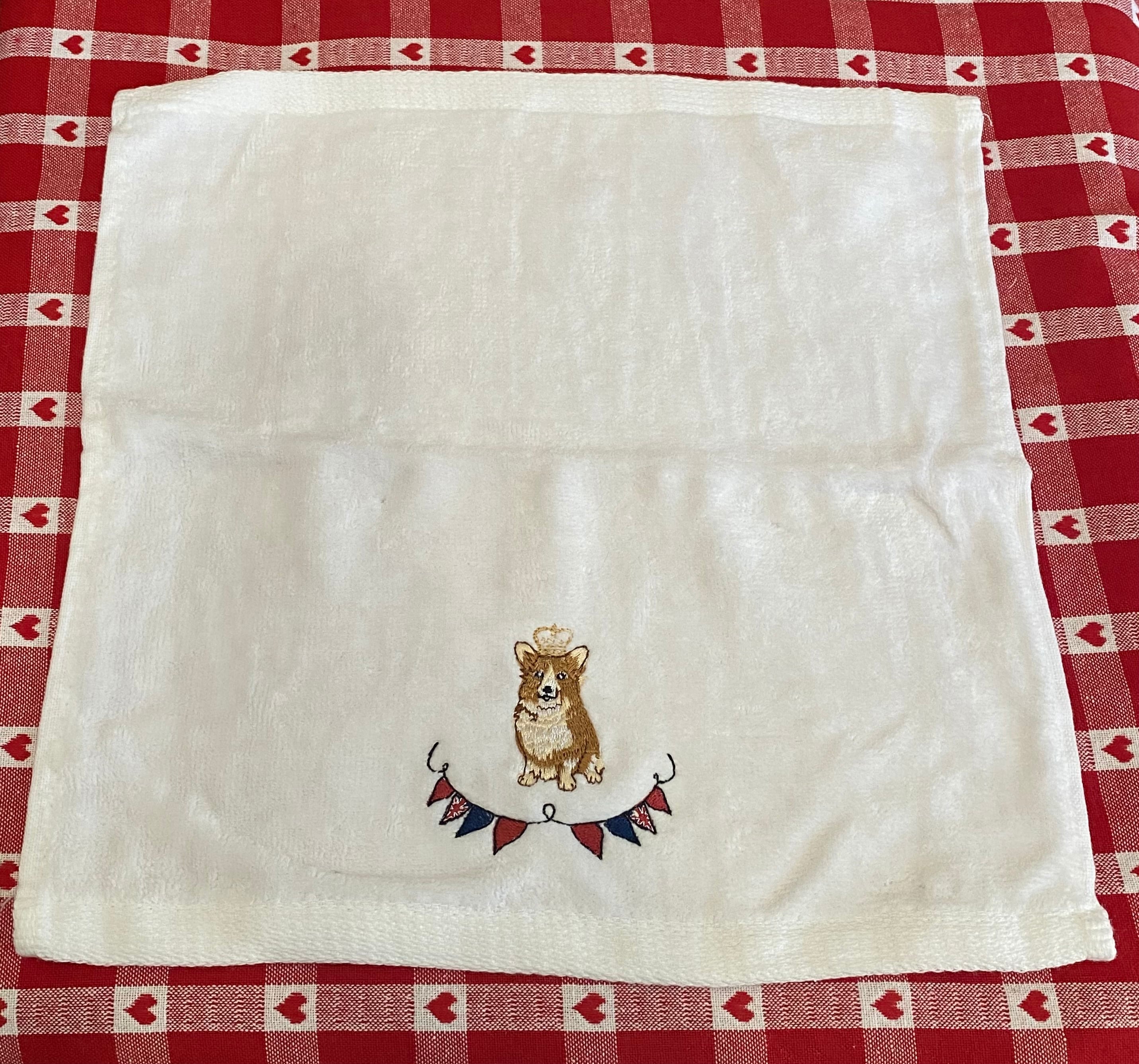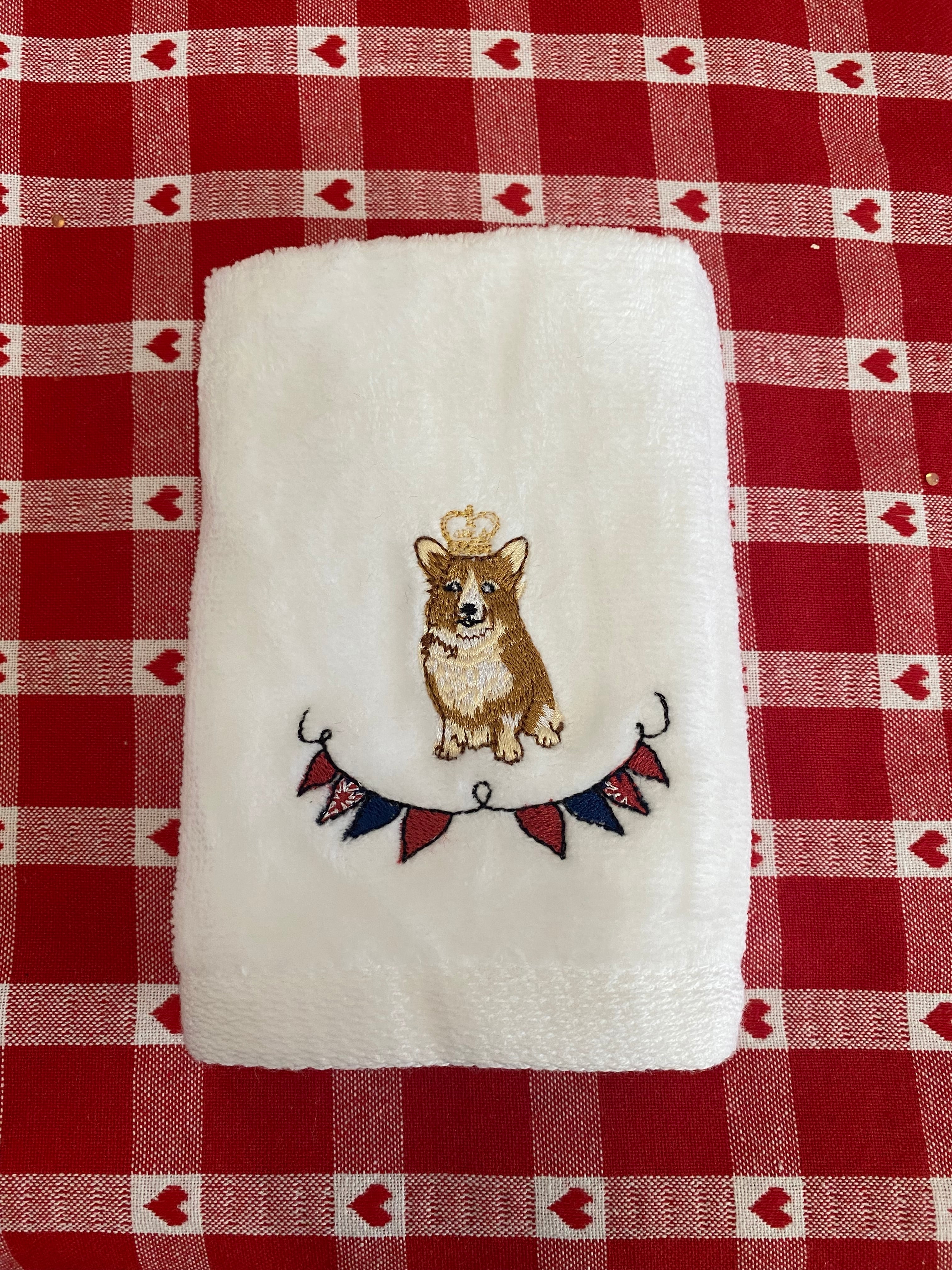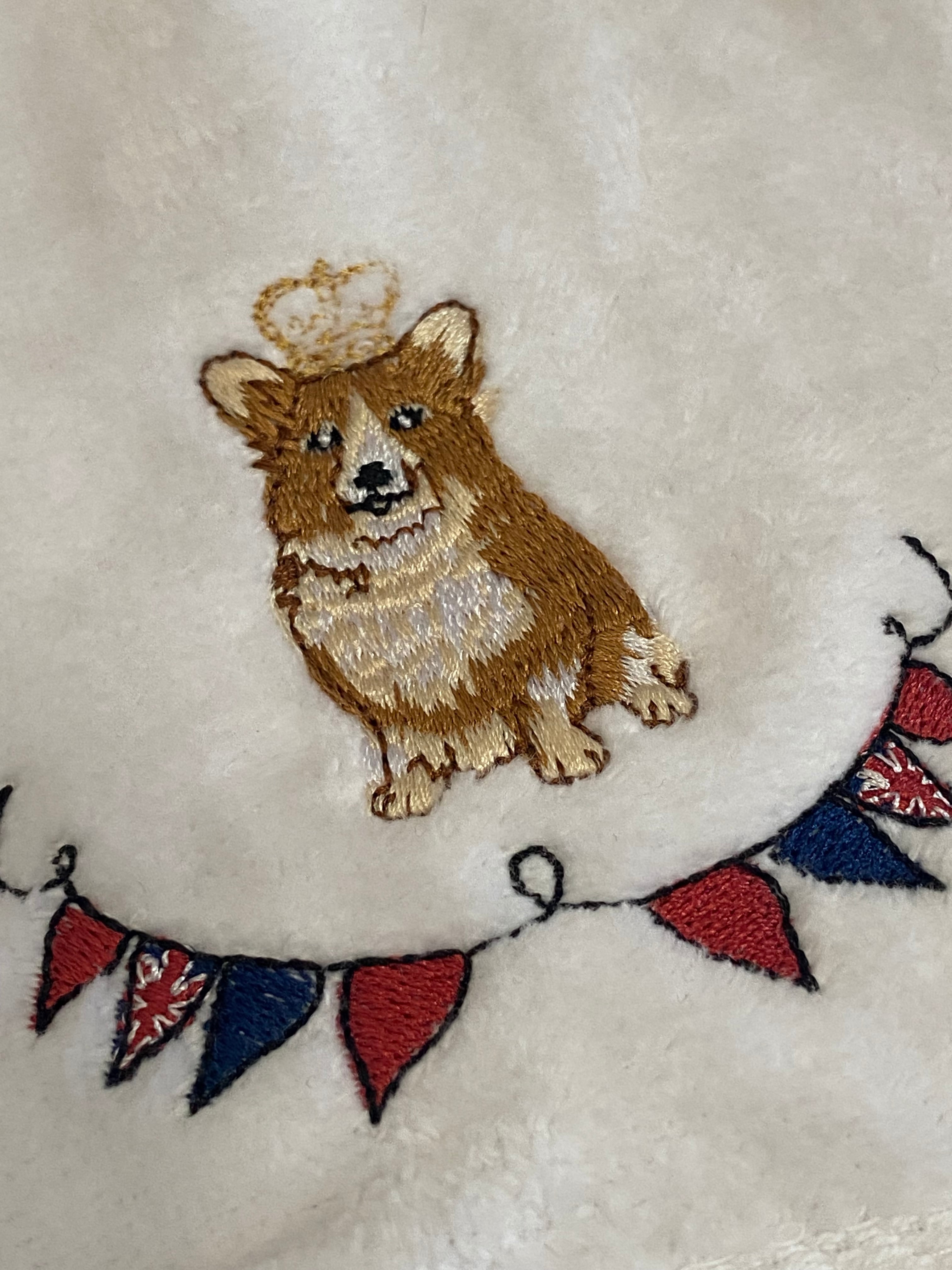 なんといっても刺繍のロイヤルコーギーが精彩を放っています。