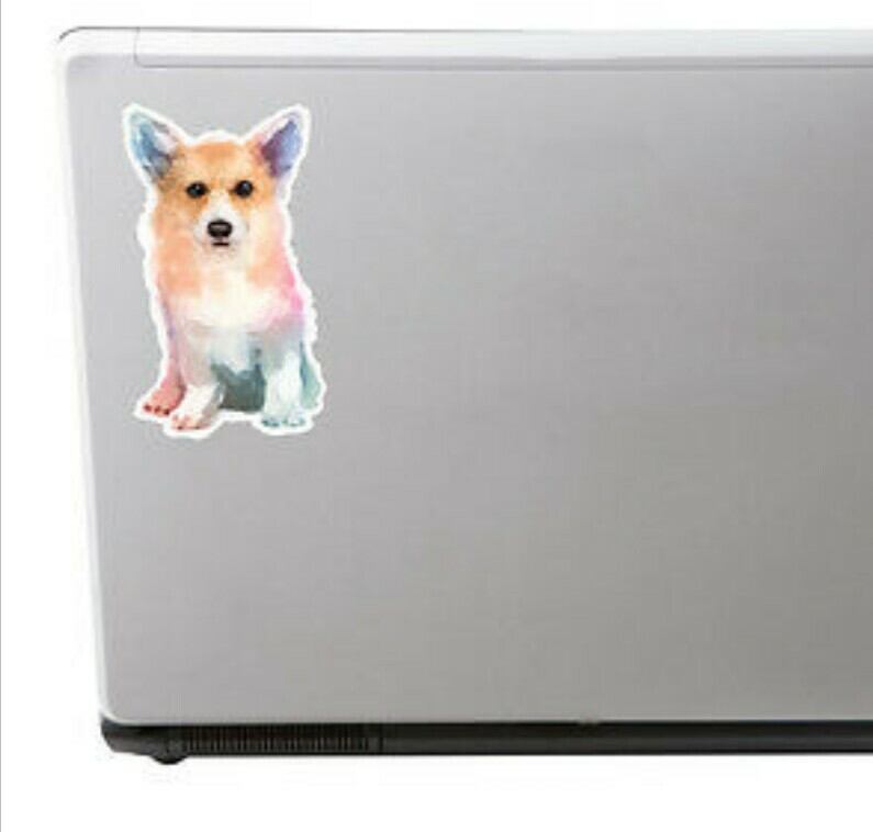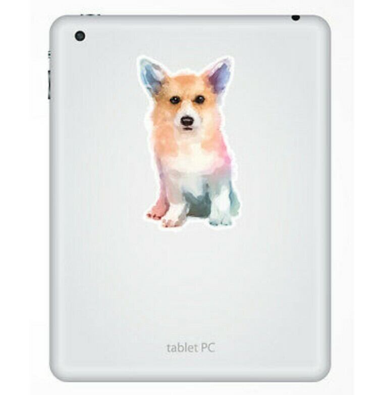 水彩画で描かれたキュートなコーギーのステッカー