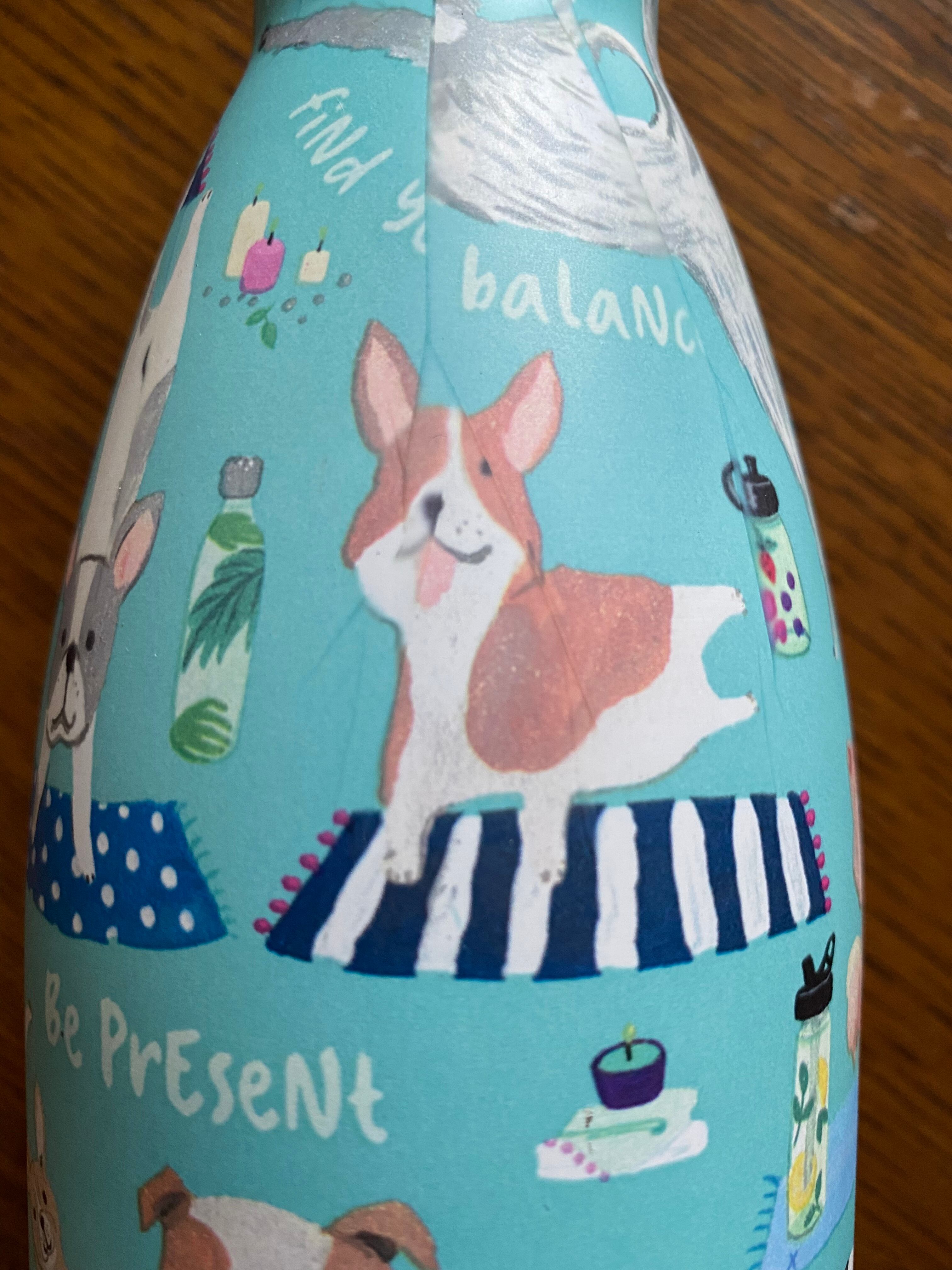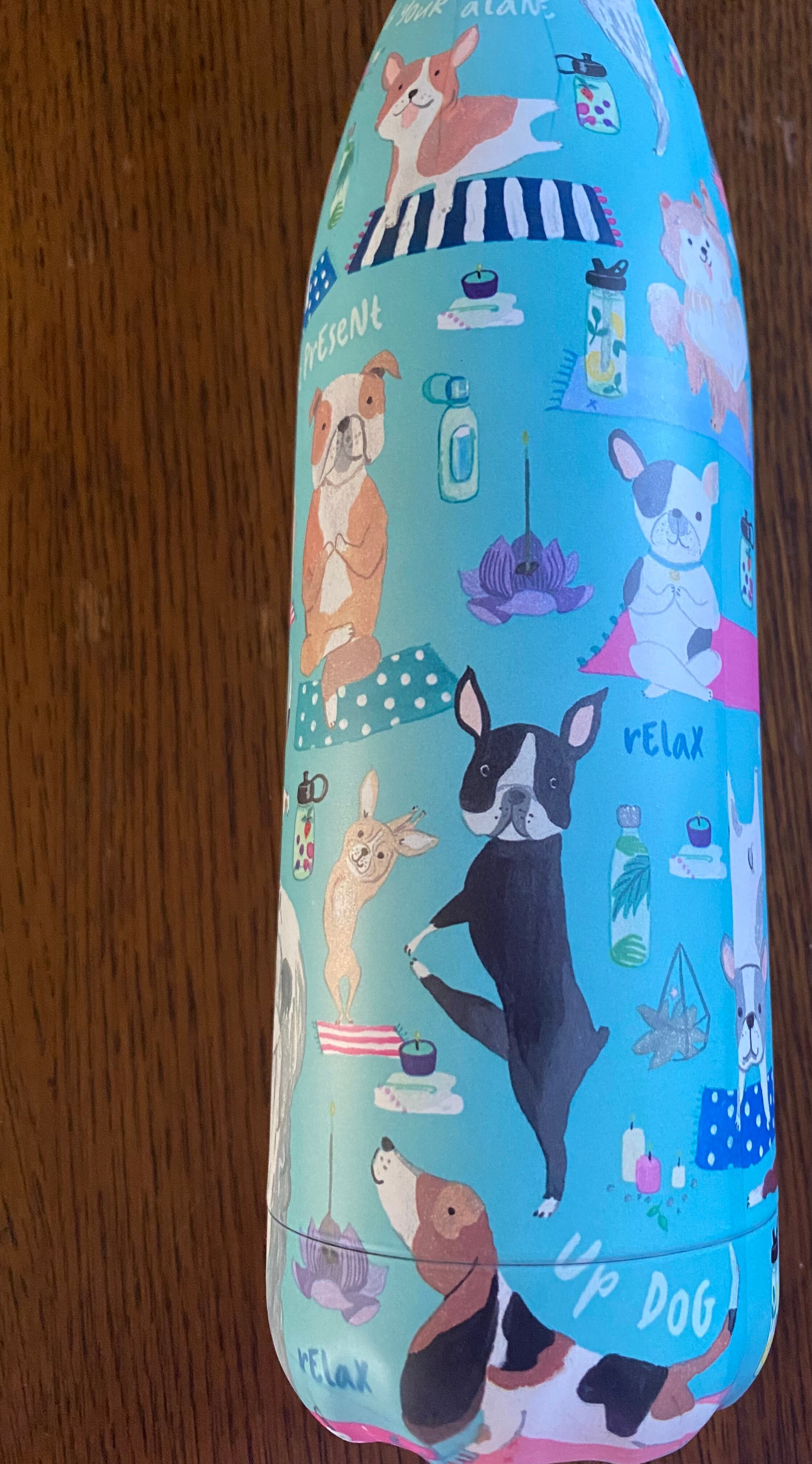 いろんなわんこがエクササイズでポーズをとっている姿がファンキーなボトル
