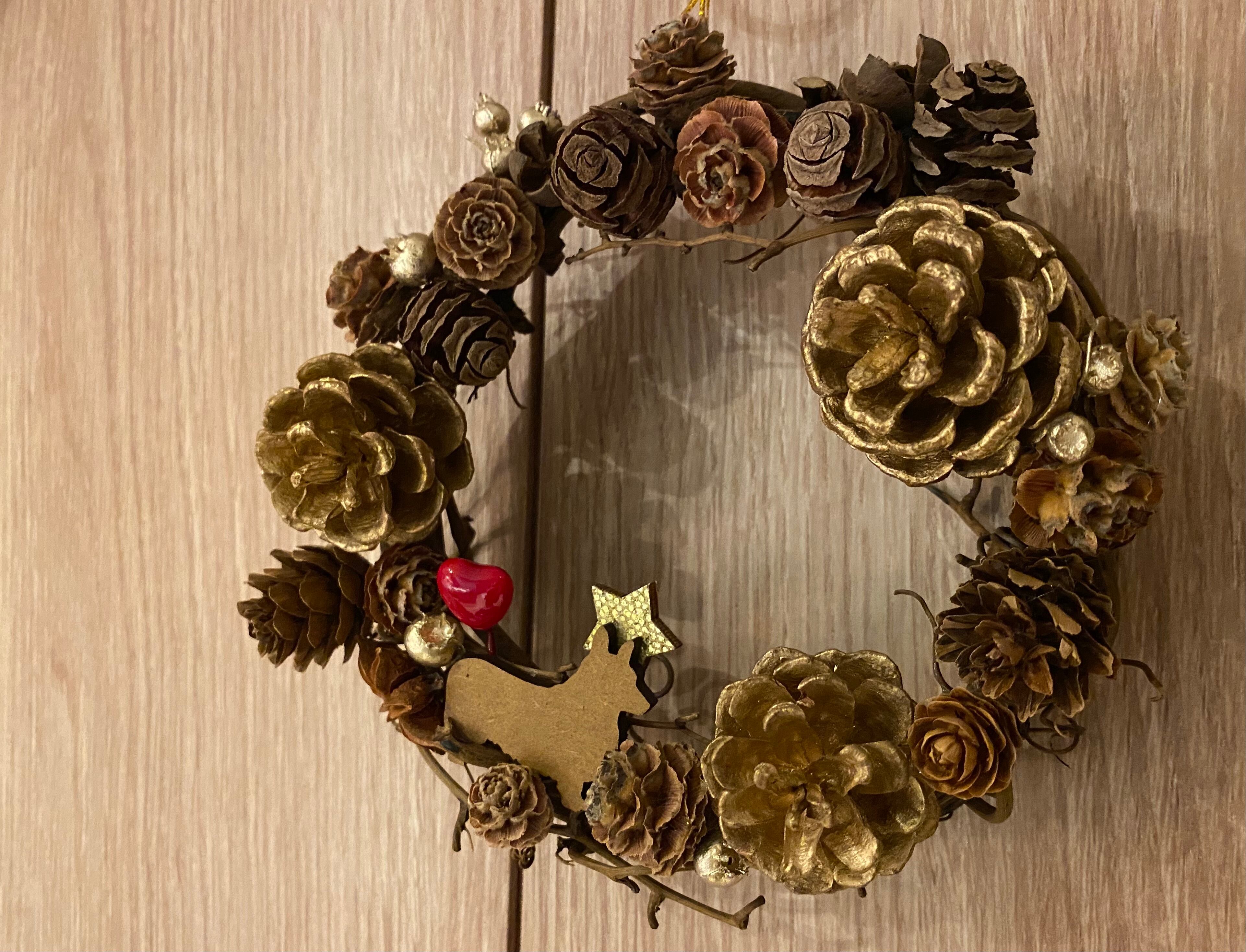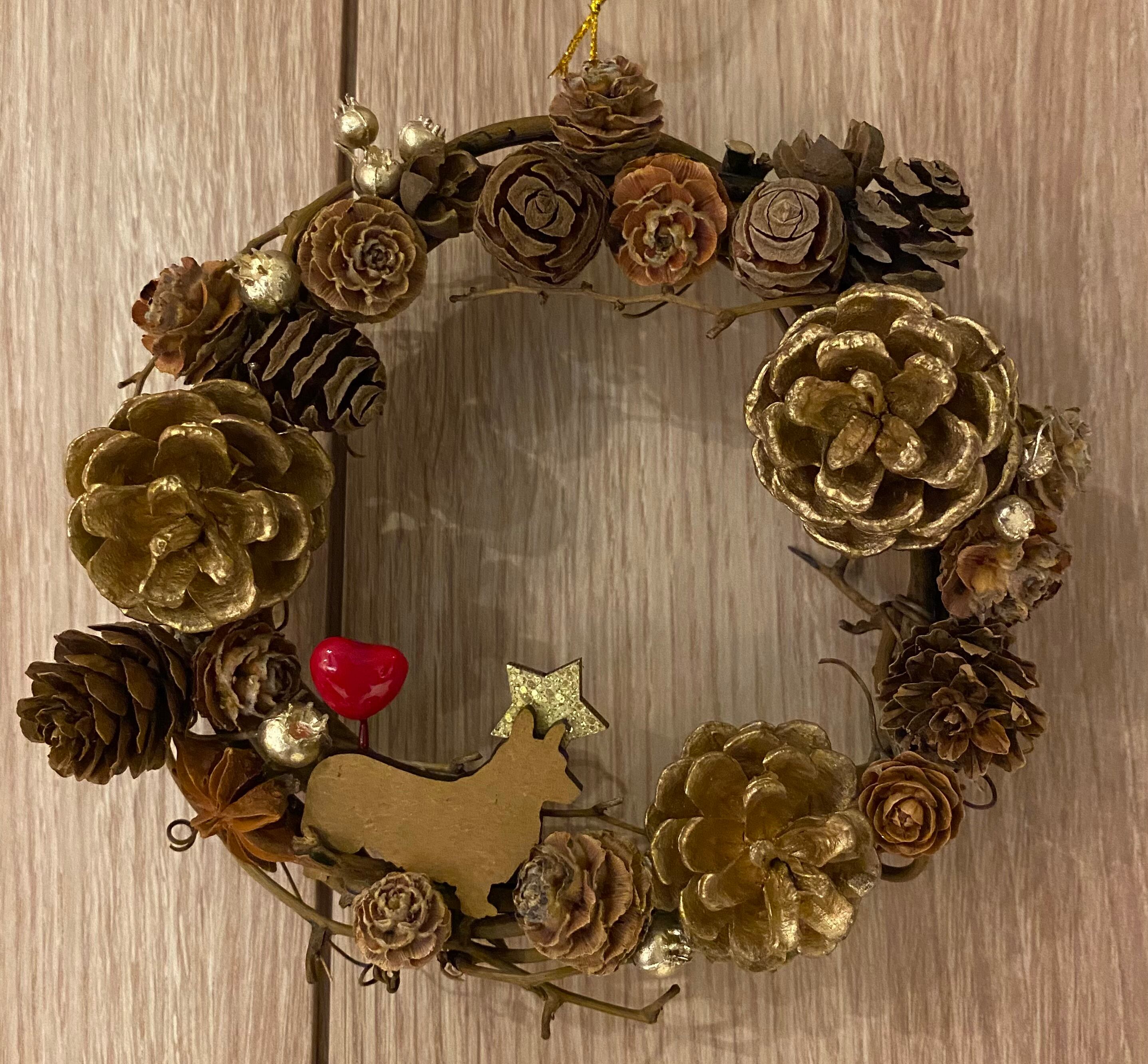 落ち着いた色味のナチュラル素材のリースにコギ。