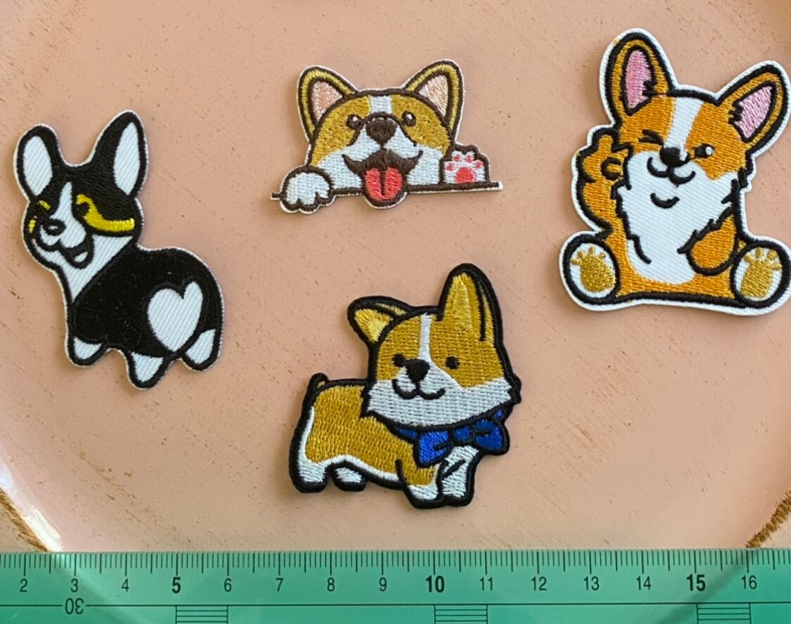 青い蝶ネクタイをしておすまししているコギのワッペン