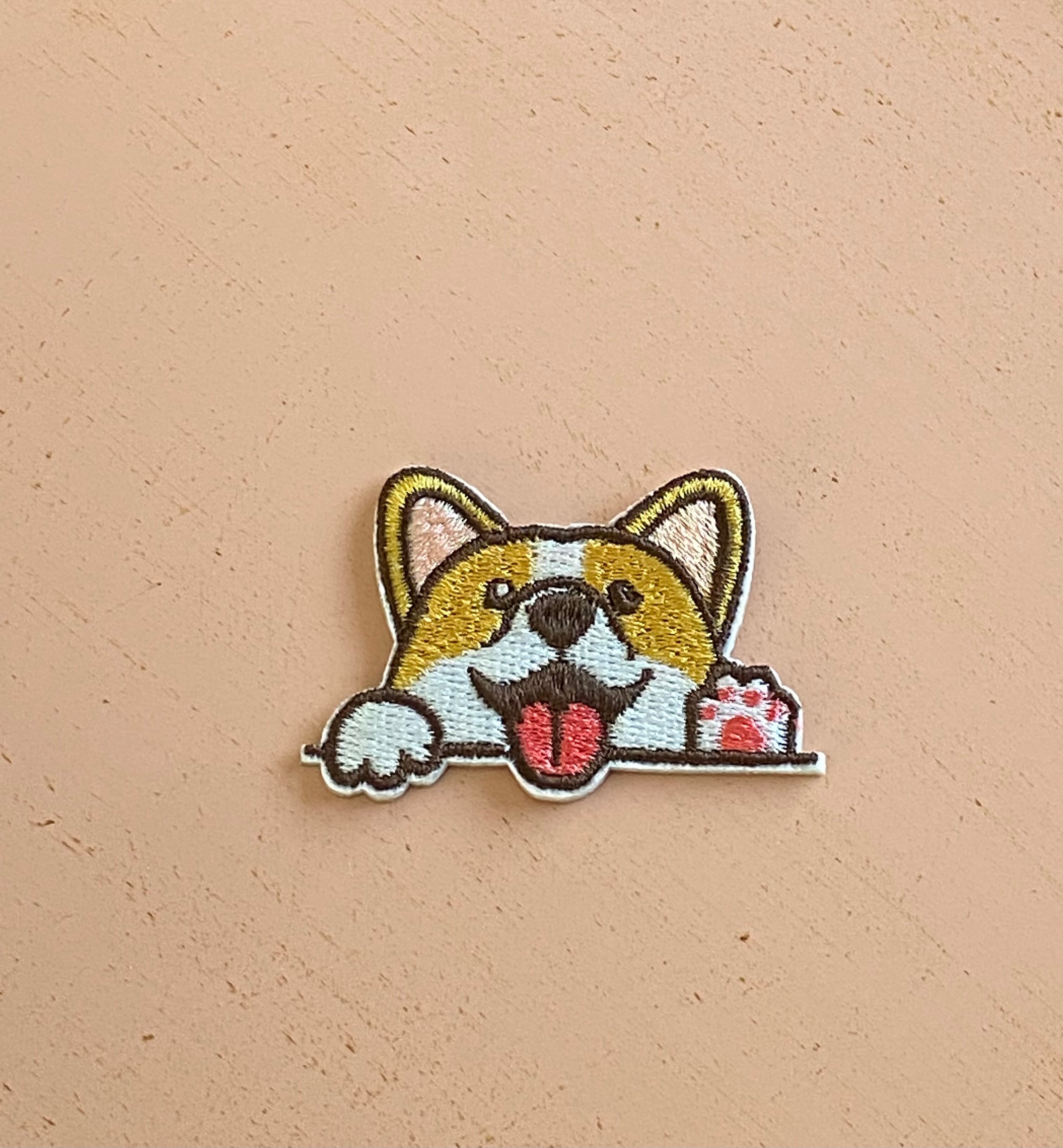 ひょっこりのぞいているような表情のワッペンです。