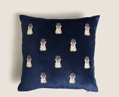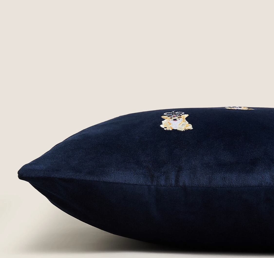 王冠を被ったコーギーの刺繍が片面に散りばめられています。