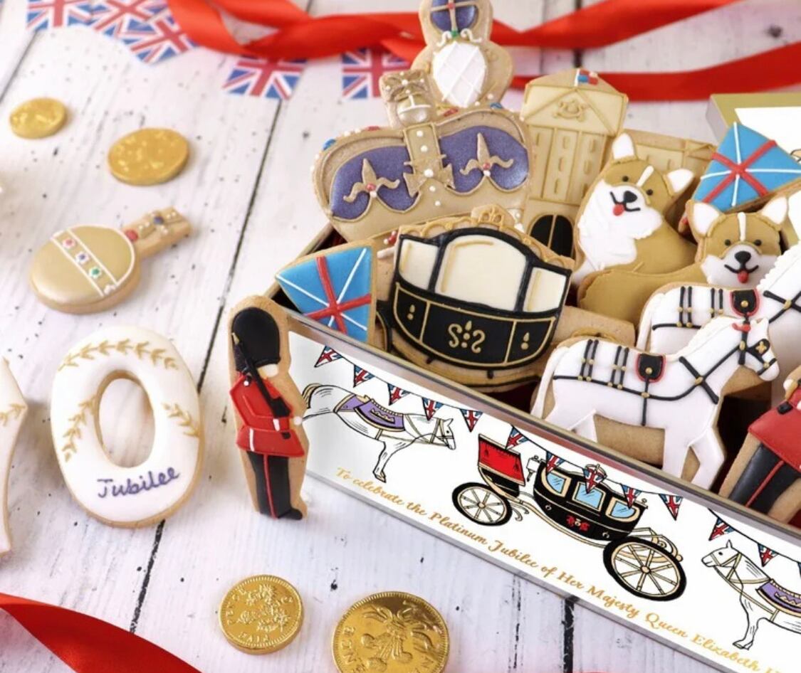 プラチナ ジュビリー限定品のアイシングクッキー 缶です。