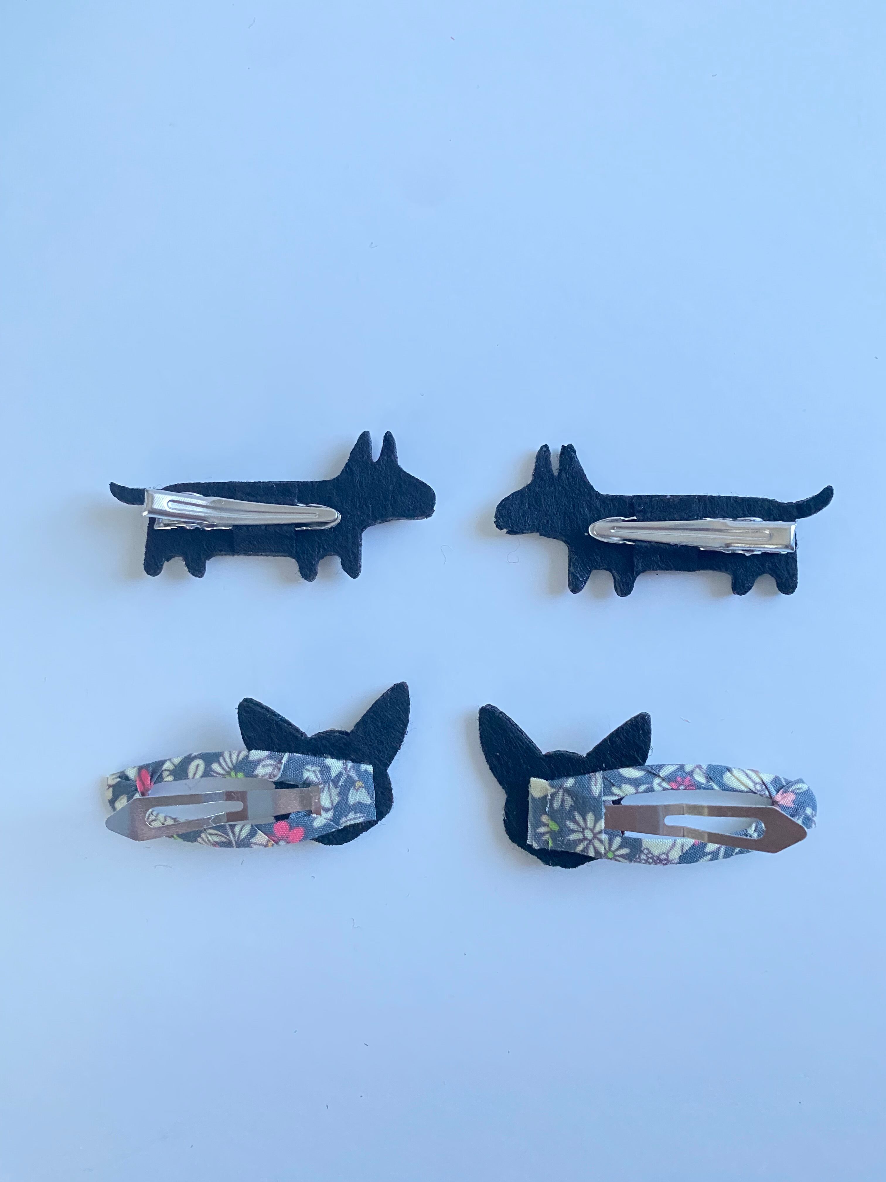 本商品は、コーギーをモチーフにした髪留めが4本セットになっています。